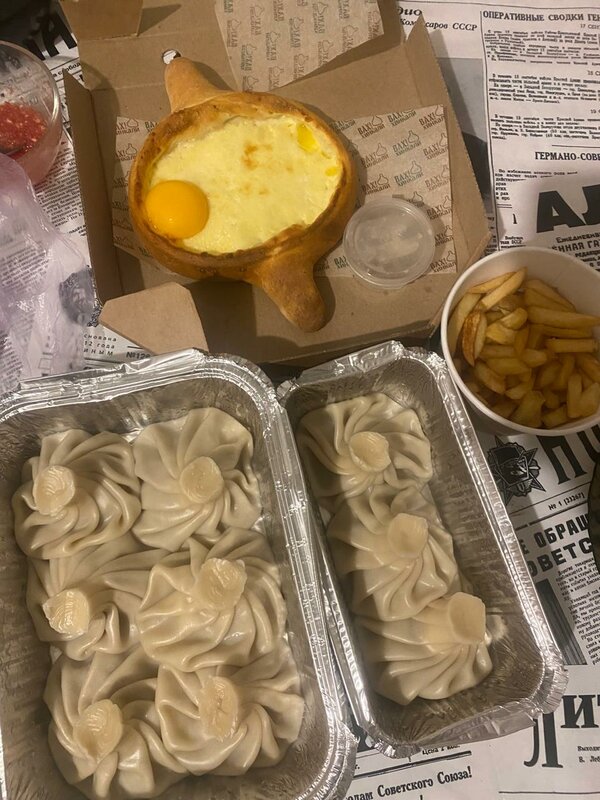 Заказала доставку, был выходной, по этому наверное доставка припозднилась, еда была чуть остывшая, в остальном всё хорошо, вкусно, всё свежее.
