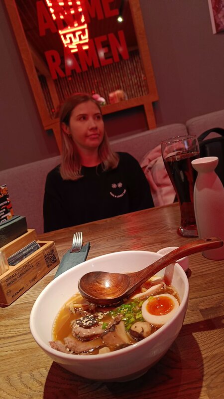 Отличный японский ресторан. Супер для поклонников аниме)) Заказал сакэ и бансу-мен. Саке неплох, пьется легко. Бансу просто супер, вкусный бульон, мягкая говядина без жира с грибочками и правильной лапшой. Порция большая, наелся до отвала))