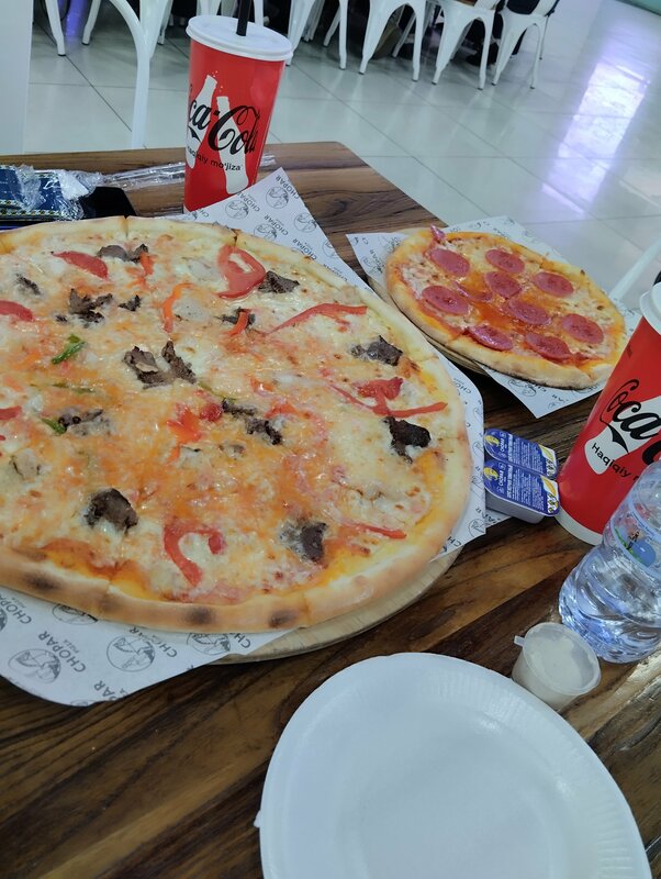 Chimgan targoviy sent filialiga borudim goshtli pitsasini zakaz qildik lekin mazasi shunaqa zoooor ekan manga rosa yoqdi 5 ta yulduz qoyaman mazasiga