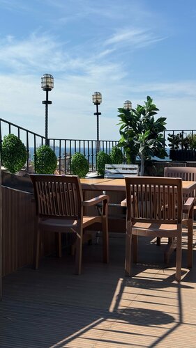 В номере эконом класса невозможно развернуться, чемоданы ставить некуда, вешалка над кроватью 40см, шкафа нет, ничего нет. Комната 3*4 кв.м. В номере два окна, одно в шахту, другое в общий коридор) Несмотря на то что мы планировали только ночевать в номере, тем не менее эта комнатушка меня шокировала и если не хотите обзавестись клаустрофобией лучше выбирать номер стандарт. Стены картонные, звук проходит отлично, просыпались вместе с соседями. Номер лучше сразу брать стандарт, т.к. нам пришлось доплатить 200€ за 7 ночей за номер побольше и из свободных был только triple room. Убирщица приходила каждый день - только заправляла кровать, полы не убирали и полотенца не меняли. Мебель старая, ремонтом и не пахнет. На завтрак - полусырые яйца и сыр, все остальное - это дикая смесь чего-то непонятного. Фото красивого дивана - старое, которого на веранде уже нет. Из плюсов - близко к достопримечательностям и трамваю т1. Вкусный кофе, красивый вид с веранды. Есть утюг на 4м этаже, но гладить нужно аккуратно, на нем нагар. Актуальные фото приложила, номер эконом не фотографировали.