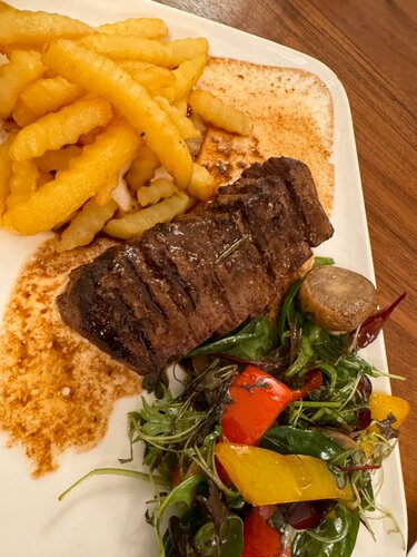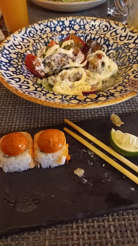 В целом неплохо, красиво. Я заказала салат с жаренными баклажанами и запечённую Филадельфию. Салат понравился очень вкусный, а вот Филадельфия нет. Есть места в городе где она вкуснее. Мы были компанией другой девочке очень долго несли ее блюдо, она вообще последняя получила свою еду.