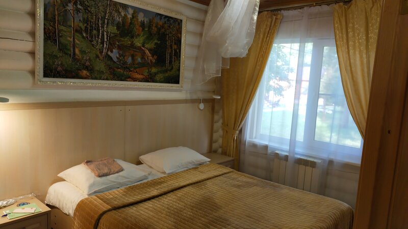 Замечательное место, корпуса и избы прямо в лесу, благоустроенная территория с детскими площадками, лавочками, качелями, гамаками. Разнообразный шведский стол, много овощей, салатов, выпечка. 3 бассейна, не работала сауна, но шикарный бальнеологический корпус с кедровыми бочками и ваннами. Чистота в корпусах и на территории. Интернет слабый.