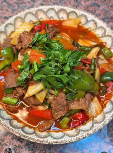 Основное направление кухни национальная, уйгурская и европейская. Выбор блюд и салатов большой. Просто вкусно и цены доступные. Парковка имеется.