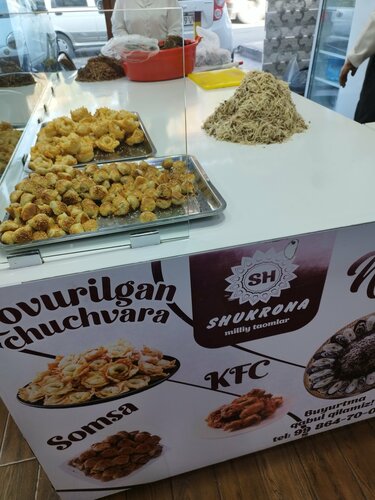 Очень большой выбор блюд национальной и европейской кухни. Порция блюд большая, сытная и конечно же вкусная. В наличии разные вкусные салаты. Интерьер уютный. Обслуживание хорошее. Это заведение пользуется большим спросом у мужчин так как здесь есть блюдо называется "Шифои жахон" который увеличивает мужскую силу.