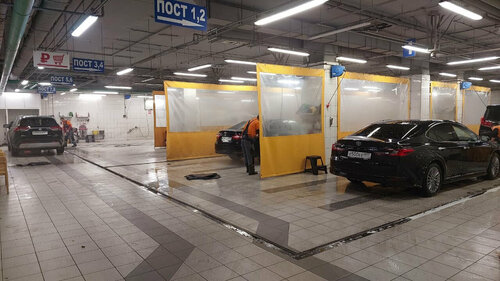 Отмечу все моменты, так как периодически мою машину на этой мойке. Удачное расположение в районе, с учетом заезда и выезда через шлагбаум. Мойка места широкие, можно открыть все двери и остается много места для передвижения, брызги от моющих рядом машин не летят. Освещение достаточное, чтобы рассмотреть все дефекты на машине, если где не помыто видно сразу. Моют машины хорошо, если где то, что-то пропустили, достаточно сказать администратору, все быстро и без вопросов исправляют. На мойке есть помещение, для посетителей, где можно подождать, когда машину помоют, присутствуют телевизоры с спортивными каналами, столики, диван, все удобно в рамках зала ожидания, красиво оформлено, есть туалет. Тут же можно заказать напитки, и перекусить, есть товарные предложения аксессуаров для авто. Мойка выполняет все виды обслуживания по мойке и химчистке машин. Заметил в последние время, на мойку не стало очереди, раньше приходилось даже звонить уточнять. Цены за услуги на мойке в последний год изменились в известную всем сторону, особенно на шинмонтаж, поэтому лучше за ранее спросить, что и сколько стоит, чтобы хватило денег рассчитаться.