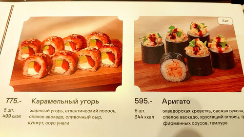 Этот ресторан сети Тануки порадовал разнообразием и качеством приготовленных блюд, имеет хорошо организованную систему обслуживания клиентов. Отмечу объективно, есть с чем сравнивать, со временем хорошо сказалось ротация обслуживающего персонала. Нельзя сказать, что что-то было раньше хуже, но новый состав официантов еще более приветлив и внимателен к посетителям, появились официанты владеющие английским языком. Время приготовления блюд сократилось, но это не показатель, а вот именно вкусовые качества блюд имеют заметные плюсы. Блюда стали, более различаемые по наполнению и выражению вкуса, появилось и много новинок, которые после пробы оставили хорошие впечатления. Меню ресторана с большим ассортиментным предложением блюд, все очень информативно представлено с фотографиями и подробным описанием состава блюд. Интерьер ресторана сделан в комфортном стиле. Этот ресторан имеет не самый большой зал из этой сети ресторанов, но столики удобно расположены, есть как с мягким диваном, так и со стульями. Перед рестораном не большая стоянка для машин, вдоль дороги. Посещение ресторана оставило положительные впечатления, особенно вкус суши и роллы, доступный чек и приветливый персонал. Мне понравились такие блюда как: Аригато, Карамельный угорь, Теплый краб, Хрустящий тунец и разные напитки из меню. Если вы пришли в ресторан в день рождения, то под конец мероприятия, вы получаете скидку на весь чек, торт наполеон, игристый мерцающий фейерверк прямо на столе и поздравление от обслуживающего персонала в виде песни, но при условии, если Вы представите документ, подтверждающий ваш день рождения. Ресторан, который дарит всем своим посетителям хорошее настроение, и положительные не забываемые эмоции.