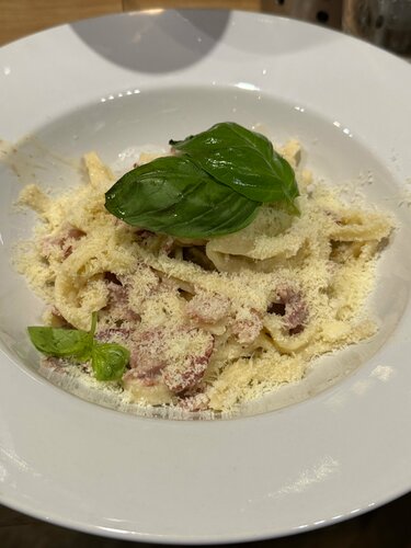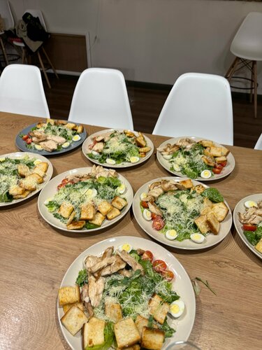 Как идея празднования супер, готовили карбонару, цезарь и панакоту, но еда получается вообще не вкусной, почти никто не доел, потому что прям не очень. Повар с вами готовит все блюда одновременно, а потом сразу уходит, то есть остается час- полтора на прием пищи без посторонних.