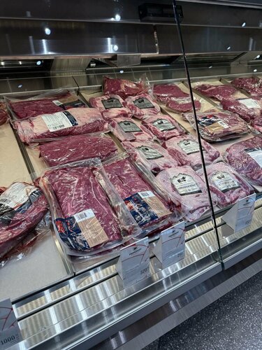 Супер мясо, купили вырезку, отрезали столько, сколько было нужно, качество изумительное, большой выбор мяса Только сотрудник был не очень доброжелательный, немного не поняли его поведение, будто немного агрессивное, учитывая, что стоимость мяса была 14 тысяч, можно было быть повежливее)))