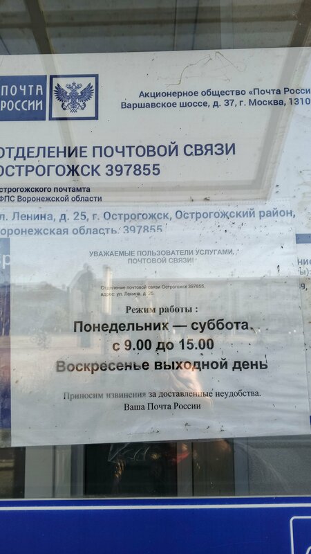 Otdeleniye pochtovoy svyazi Ostrogozhsk 397855