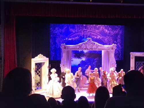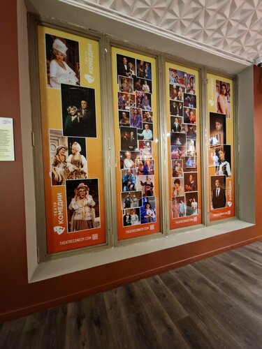 Не сразу увидела вход среди рекламных огней.Афиши утвердили ,что иду в верном направлении)А дальше большой холл ,красивая люстра над лестницей ,и еще одно фойе.Походила возле портретов артистов театра.Любимое занятие -узнавание)).Понравился и зал.Спектакль -пьеса Бомарше.Обожаемая классика.Всё как мы любим."Соль-перец "современности к месту и во время.!Отлично проведённое время.
