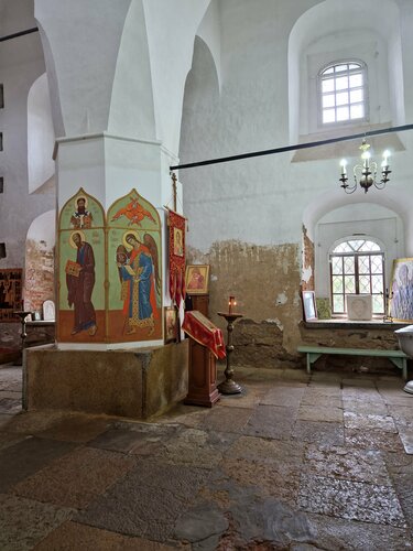 В маленькой Старой Ладоге так много достопримечательностей,что приезжая на машине, случайно проскакивали, не заметив этой достойной внимания, церкви.На высокой горе,над рекой!Так и представляешь какой красавицей она представала перед прибывающими по реке,заставляя креститься.Во время спасённая от обрушения,теперь радует прихожан и туристов .Древность постройки, святость и необычность её ,а также и целебная водичка ,хорошо оборудованного источника теперь не даёт проехать мимо.)