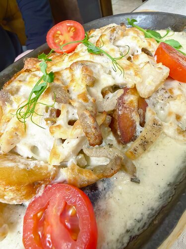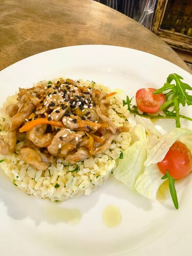 Вкусная кухня, быстрая подача. Красивый интерьер. Вежливый персонал, не оставили нас голодными после долгой дороги, даже при готовящемся банкете.