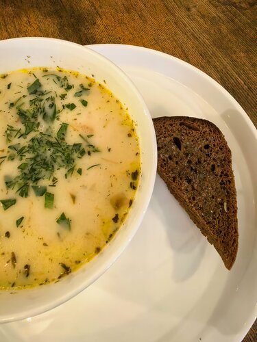 Очень необычный, под старину интерьер. Красиво одеты официанты. Быстрая подача. Очень вкусное, разнообразное меню. Спасибо за приветствие в виде хлеба с крученым салом. Рекомендую!