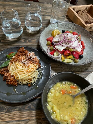 Великолепный люля-кебаб из телятины и овощной салат! Вкусные помидоры! Однозначно стоит посетить, точно для себя найдете что съесть : грузинская кухня, итальянская и русская. Для взрослых и детей, идеально для семейного ужина.