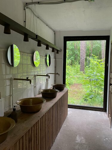Еда на 5+++ Почти каждый прием пиши из 3х блюд. Завтрак: каша, скрембл, блинчики Обед: суп, паста болоньезе , салат Ужин: салат, горячее (у нас был плов/утка) Обслуживание 5+++ Персонал молодой, но это не минус, а приятный бонус) по просьбе сделают кофе раф,даже если его нет в списке , но мы купили сливки 😁 Большинство чаёв - травяные, но в таком месте, это тоже, только плюс! Территория большая, гуляешь с удовольствием как в лесу, в далеке от цивилизации Расположение 5+++ Есть парковка сразу после КПП для машин ( на охраняемой территории) В домиках есть средства от комаров/клещей, также книга и настольная игра. Больше настольных игр в общей зоне. Из минусов : нет фена для волос в домиках, а также одноразовых щеток с зубными пастами.