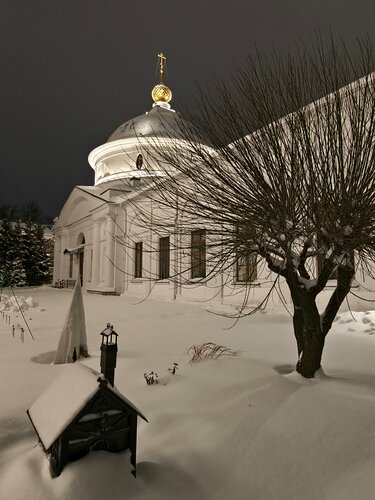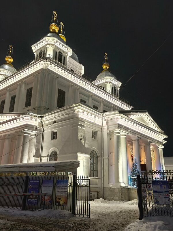 Каждый раз, когда мы приезжаем в Ярославль, живём рядышком с монастырем и отмечаем постоянные шаги его возрождения и воссоздания былого благолепия. Он небольшой, но очень красив. Зимняя подсветка на фоне белого снега подчеркивает его монументальность и классичность. Литургия в 6.30. Особенность: немало письменных напоминаний, что в это время нельзя ходить, прикладываться к иконам и ставить свечи. Не благословляется - и это правильно. Но немало людей спешат на работу и у них немного времени, и им бывает важно в это время зайти в Храм для обращения к Господу с просьбами, благодарностями ... Увидят предостережение и пройдут мимо. Или зайдут и нарушат. И так и так - жаль. Не берусь судить - правильно ли это... При монастыре трапезная - тоже возрождённая, старинная, хорошая...
