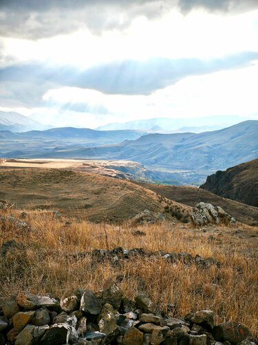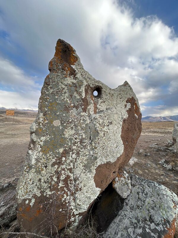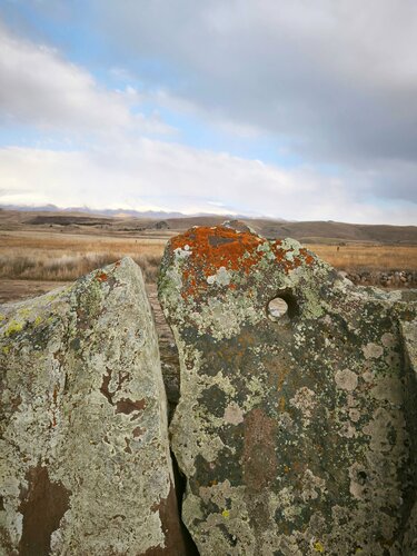 Наши воспоминания о декабрьском Караундже - это пробивающееся сквозь зимние облака ослепительные лучи солнца, пронизывающий ледяной ветер, прозрачные дали, выжженная сухая земля и перемещающаяся между каменными выступами отара овец в толстых шубах. Им все нипочём. Ощущения двоякие: восхищает древняя тайна, предназначения, круглые отверстия, проделанные в камнях людьми, которые жили тут задолго до нас, скрытые, неразгаданные смыслы... С другой стороны - тут космически одиноко и марсиански пустынно. Возможно только зимой. Но подозреваю, что всегда. Доехать сюда несложно, но вот войти - недешево. Кто-то ловко прихватизировал древний кусочек мира и торгует возможностью к нему прикоснуться, практически без вложений: из них тут только забор.
