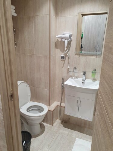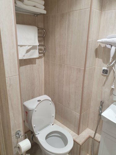 Всё на высшем уровне, нам очень понравилось проживать в абсолютно новой гостинице, всё отлично работает, обслуживающий персонал отличный, уборку сделали на 5+. В номере есть всё! Холодильник, кипятильный чайник, чашечки , в дозаторы было налито мыло, шампунь и гель для душа, есть фен, бельё новое, матрасы жёсткие реально ортопедические как и заявлено, ещё наш номер был с кондиционером и сейфом, со шкафом и вешалками, вообщем в номере было всё, тапочки попросили на ресепшене, кулер с водой на этаже! А какие потрясающие завтраки были, в красивом ресторане, поворы молодцы, всё было на высшем уровне! Так держать, желаю долго поддерживать такие шикарные условия! Спасибо, мы после Вас ни где не захотели больше останавливаться!