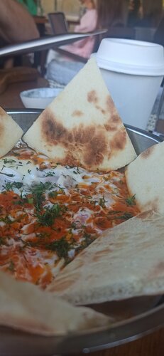 Классная идея с книгами и уютная атмосфера. Из плюсов: 1. Точно можно отметить вкус блюд и размер порции. Можно наесться на весь день) Брали баварский завтрак, шакшуку. Пушки в завтраке выше всех похвал 2. Скорость подачи: 10-15 минут 3. Чистота в зале Над чем бы стоило поработать - персонал, хочется немного клиентоориентированности, чувствуешь себя не гостем, а обузой.