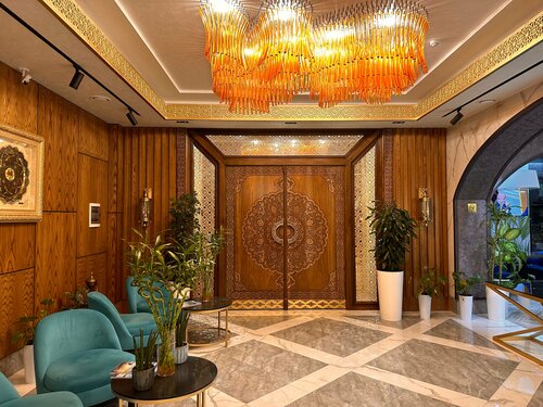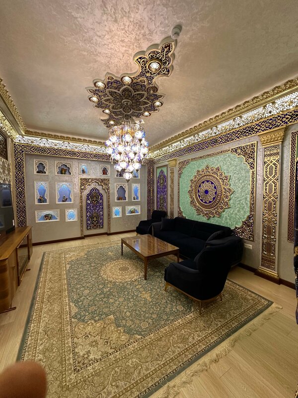 Этот отель в любят любого человека который зайдёт в него это просто нереально огромный номера с национальным бухарским стилем все продумано до мелочей на минус первом этаже имеется ресторан если вы хотите себя почувствовать Эмиром то тогда возьмите комнату люкс вы реально удивитесь