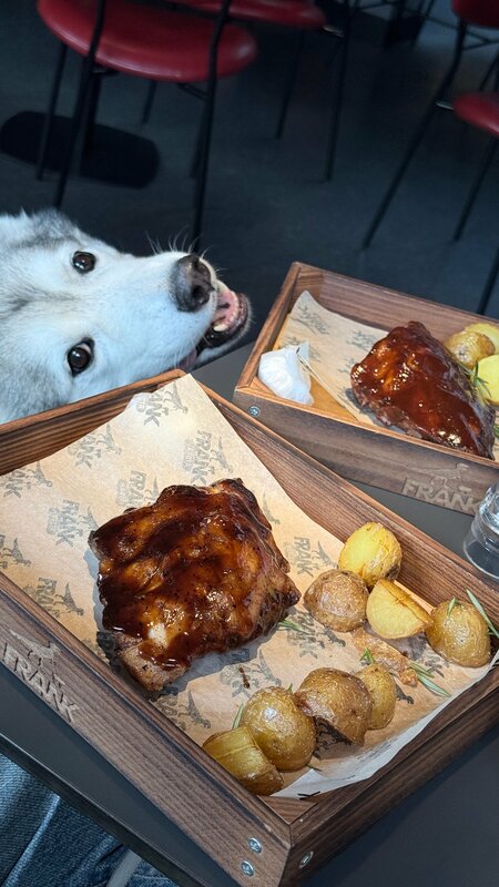 Пришла со своим пушистым другом в заведение, у меня достаточно крупный хаски,поэтому думали, что нас не пустят, но как нас встретили сотрудники 🤌🏻 Остались очень довольны обслуживанием, быстро,вкусно, благодарим за прекрасное времяпровождение!🤍
