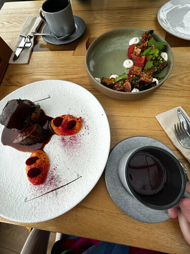 Великолепное место! Обширное разнообразие блюд, встречают радушно, с улыбкой на лице, и обслуживание на высоте! Расположение выгодное- возле Горного воздуха, в самом низу перед подъемниками) Отдельное спасибо за участок детской игровой! Это супер) Были летом, всё было великолепно- начиная от встречи администратором и заканчивая атмосферой в целом)) Обязательно рекомендую для посещения на Сахалине!) А хачапури с грушей в самое сердце, как и Анна Сахалиновна (Павлова )💔