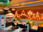 Удивительно приятное место в пять утра! С раннего поезда рекомендую, отличная локация, чтобы попить кофе и подождать, пока откроется всё остальное. Не забегаловка, ощущается как приятное современное кафе. Вкусный вок и десерты. Кофе лучше сразу брать двойной. Цены выше среднего, но при таких часах работы — абсолютно замечательно.