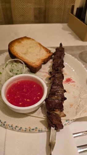 Выбрали этот ресторан по отзывам и не ошиблись. Манты самые вкусные из тех, что довелось попробовать в Узбекистане, жиз по-уйгурски хорош, шашлык из печени нежный. Рататуй мы как-то не поняли, хотя и он не сказать, что плох. Очень жаль, что не было плова, но тут уж лотерея, т.к. плов - блюдо обеденное, прямо как капучино в Италии 😆. Интерьер приятный, живая национальная музыка. Обслуживание хорошее.