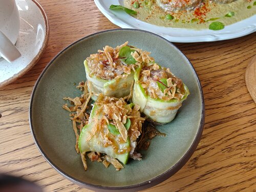 Приятная атмосфера и обслуживание. Сначала посадили за столик около компании, где отмечали день рождения - мы попросили нас пересадить подальше, так как было слишком громко. Пожелание учли, пересадили в зону, где было тише и даже удобнее) По блюдам - все вкусно, официантка ответила на все вопросы. Вынесли довольно быстро, все было свежее, горячие блюда не были остывшими)