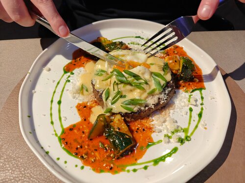 Вкусные и поздние завтраки (очень актуально в выходные, когда хочешь выспаться и никуда не спешить). Так как были в выходной, довольно большое количество занятых столиков. Вынесли все быстро, кроме одного блюда - но официант принёс комплимент за долгое ожидание, это сгладило ситуацию)