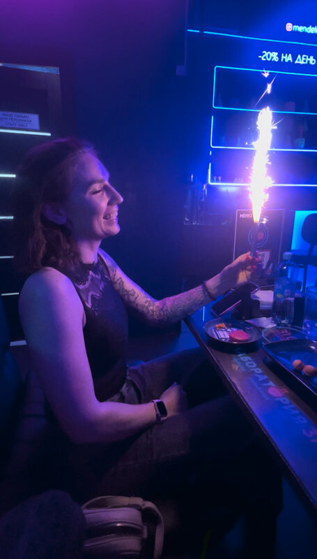 Заботливый и вежливый персонал, внимательно помогают с выбором по напиткам. Ходили с подругами, также есть скидка на день рождения!) Нашу подругу порадовали вниманием и принесли милый тортик из макарунс..) Также есть караоке, где можно проорать свои любимые песни.) Сделайте со звуком что-нибудь)