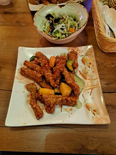 Сюда шли целенаправленно, попробовать китайскую кухню, но увы ожидания не оправдались. Начну с порций, как нам сказал официант они европейские, но увы взяв салат и основное блюдо мы даже и близко не насытились. Считаю цена завышена, за такие порции. Что на счёт блюд, вкусно, есть можно. Но без особого восторга, не оставляет еда желания вернуться сюда и попробовать ещё что-то. Такого же уровня еду можно попробовать в заведениях попроще и подешевле 😁 На счёт антуража и посадки, сомнительно, особенно бросается в глаза пол. Есть столики, где высоким людям будет крайне не удобно находится. Место не впечатлило.