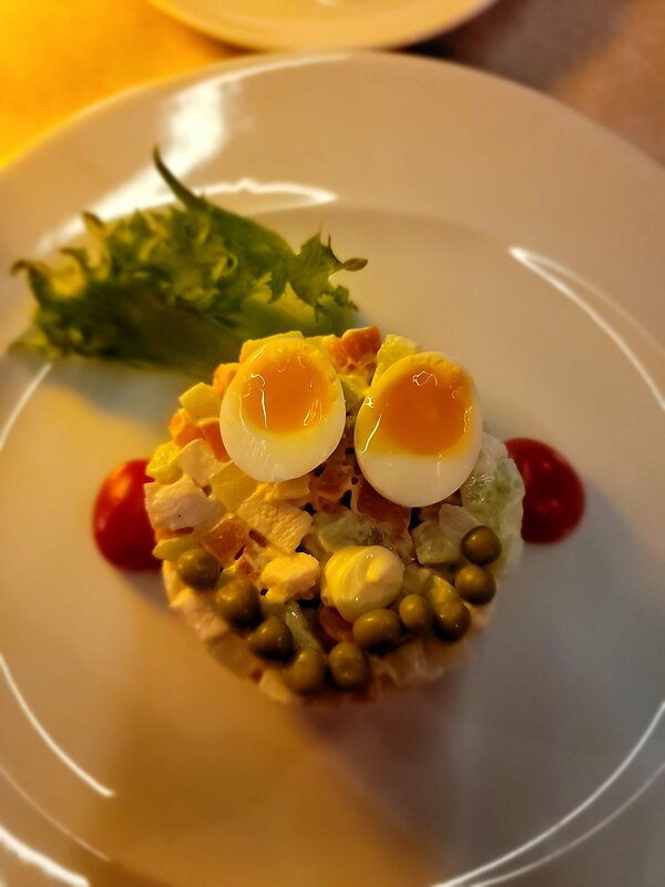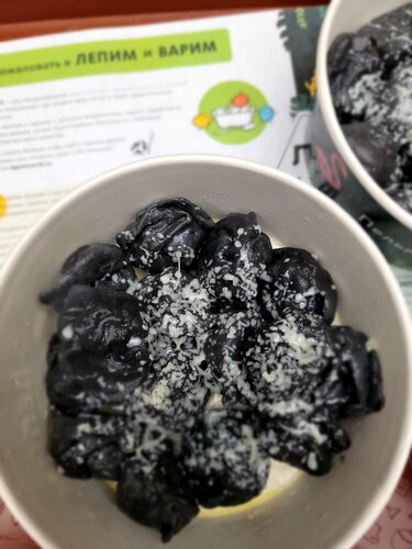 Вкусно и быстро! Особенно понравились чёрные пельмени с креветкой! Салат под шубой неплохой, понравилась оригинальная подача в стеклянной банке ! Компот из сухофруктов дети заценили!