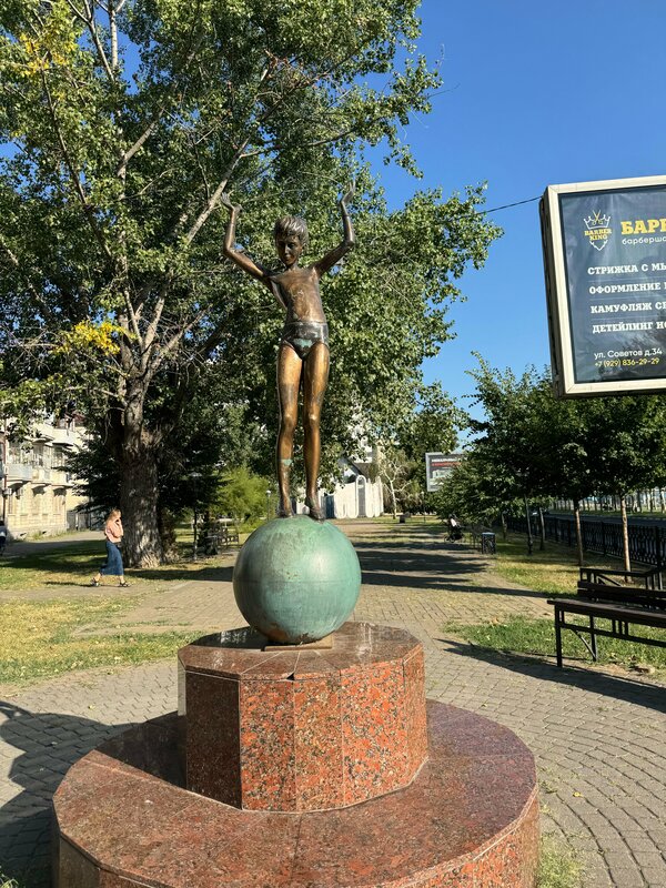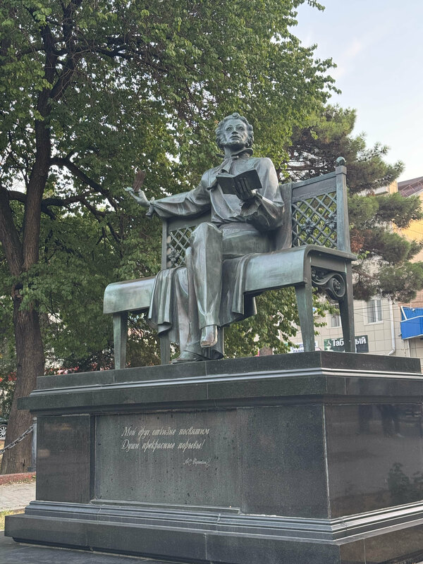 Хорошая скульптура. Есть лавочки, посажены цветы. Но чуток не хватает ухода. Раз посадили цветы, надо поливать…. Понимаю, что юг, жара…..