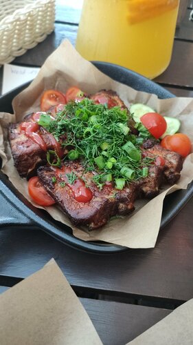 В целом, вкусно, шашлык из говядины, люля, компотик, лагман - хороший, большая территория, атмосферно. Немного переработать меню - овощи, салаты не ахти. Можно платить картой.