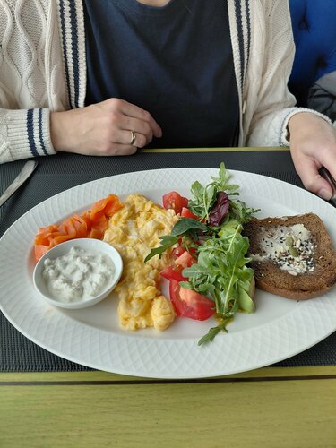 Завтрак входил в стоимость номера гостиницы. Выбрали завтрак на 25 этаже в ресторане Extra Lounge. Еда вкусная, НО официанта, чтобы сделать заказ ждали 35 минут. Заказанную еду принесли в течении 15 мин. У мужа был в этот день был день рождение, должен был быть комплемент от шеф повара и скидка 15%, нас так никто и не поздравил. Сказали: "не заметили". Также перепутали по оплате завтраков, сказав, что оплачено только за 2 (бронировали и оплатили 3 завтрака), пришлось доплачивать картой. При выезде из номера, на ресепшене этот вопрос был быстро решен, деньги за завтрак вернули.