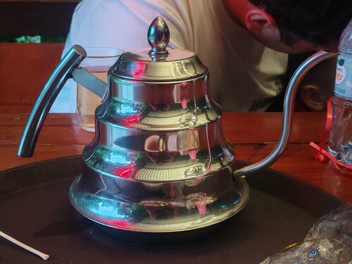 Кафе, чайный домик находятся на мой взгляд на одной территории. Живописное место, мы спрятались в кафе от дождя, было приятно посидеть в беседке, попить горный чай с вареньем из малины и поесть горяченькое. Огромным плюсом является то что в беседках установлены обогреватели. Персонал дружелюбный, на территории кафе работает вайфай. На душе остались приятные воспоминания, спасибо большое за гостеприимство, всех благ вам)