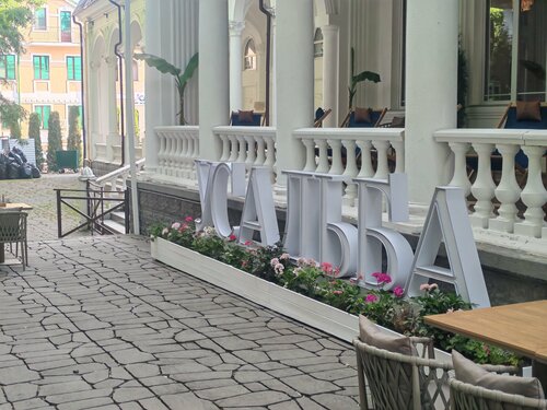 Замечательный ресторан. Официант очень внимательный молодой человек, поправил нам стол, был очень вежлив. Мне очень понравилась еда, плюс еда понравилась и ребёнку. Так же время уже подходило ко сну, и я спросила можно ли ребёнку поспать или в кресле или в гамаке, на что мне ответили положительно и даже сказали что в кресле дети засыпают быстрее. В итоге сын поспал целый час, а я смогла спокойно покушать. Так же спасибо и остальному персоналу, все спрашивали все ли хорошо, сфотографировали нас с сыном так как на территории ресторана есть несколько очень красивых зон для фото. Вообще впечатления только положительные от данного заведения. Процветания вам)