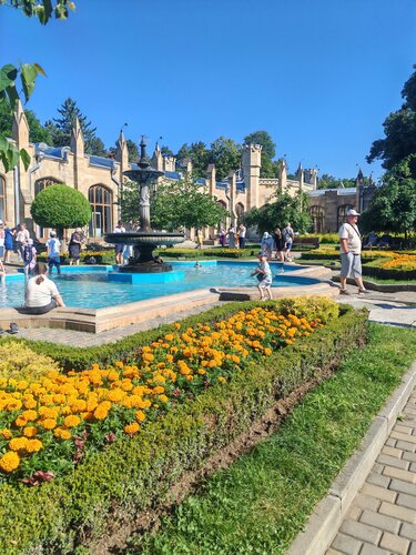 Шикарный парк, меня поразил он множеством деревьев и кустарников плюс много цветов. Можно покормить белочек, можно подняться к ваннам и послушать классическую музыку из динамиков, множество лавочек, все чистенько. Так же визитная карточка парка это бутылки Есентуки. Вообще очень колоритные парк. В самом начале кстати красивые фонтаны. Мы попали на выступление индейцев, было приятно послушать. От парка у меня остались только положительные эмоции, хотя считаю что некоторые постройки нужно отремонтировать. Естественно будем там гулять ещё, как только приедем в Есентуки.