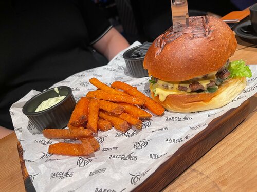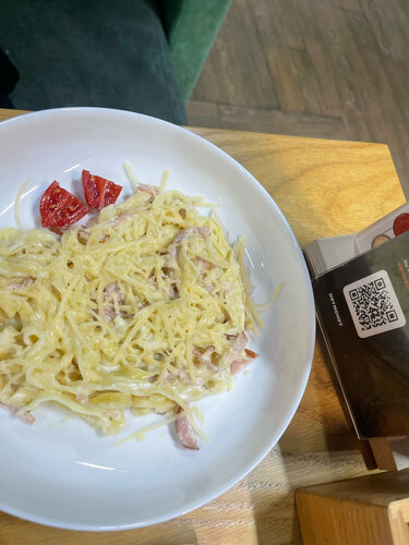 Два раза приезжали в этот город и два раза удивлялись - когда ели тут. К слову первое посещение я оценила на 5, второе на 2. Первое посещение. Остались приятно удивлены посещением данного заведения. Порции большие, цены ниже среднего(если сравнивать с большими городами). Приятная музыка, вызов официанта с кнопки. Обслуживание достаточно быстрое, но сковородку из картофеля и лосося сразу сказали ожидание 40 минут, по факту 50 вышло. Морс со смородиной прекрасный, чизбургер брал сын сказал сочный, пиццу брали мясную - вкусная. Салаты цезарь с курицей - мясо мягкое (рваное), цезарь с креветкой тоже порадовал, и размер порции и то как зачищены креветки. Картофель фри - хрустит, вкусный. Сковородку с картофелем и лососем попросила упаковать с собой. Персонал вежливый. Парковка есть. Второе посещение с разницей в дае недели. Возможно повар другой, НО не советую заказывать пасту / тут ее не только не умеют подавать , но и готовить. Крупная лапша с карбонадом и натертым сыром, чеснок!!!!!!!!!! Вы где в рецептуре нашли - там он просто кусками лежал. ПОКЕ - почитайте рецепты. Измените состав. Безвкусно и пресно - ни имбиря ни соевого соуса ни бобов. Как итог - можно заказывать простую еду - салат, фри, бургер, пиццу. Если хотите что-то из сложных блюд - нет. Обслуживание- Нож для пиццы надо выпрашивать), со стола надо просить протереть. Ни счет гостя не увидела, ни чека. До 5 баллов далеко.