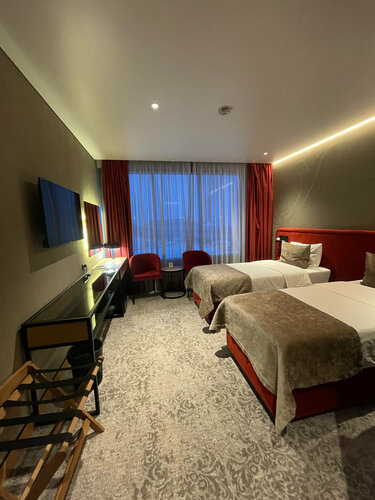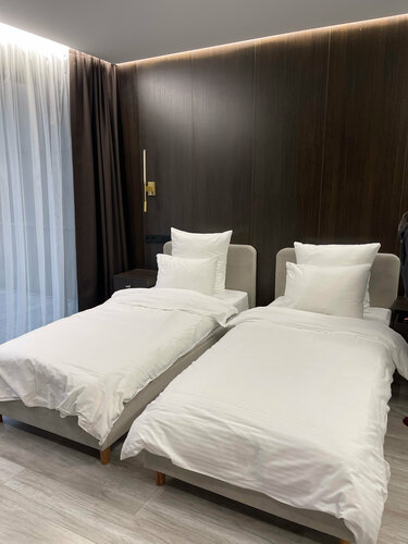 Номера чистые, достаточно просторные. Окна не открываются. Запахов посторонних нет. Можно проживать с животными. Парковка за отелем. Завтраки шведский стол, работает кухня - можно заказать горячие блюда из яиц. Спа зона не входит в оплату номера. Посещение на 2 часа стоит 1200 с человека, если вы проживаете в отеле. Бассейн небольшой, хамам, сауна, Альпийский душ, соляная комната. Можно заказать чай у администратора. При большом количестве людей будет тесно. Персонал в отеле вежливый, отзывчивый. Удобно что из отеля по переходу можно пройти в аэропорт, на аэроэкспресс или в центр Казань Экспо.