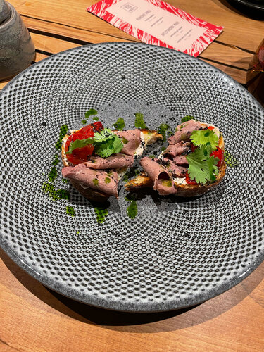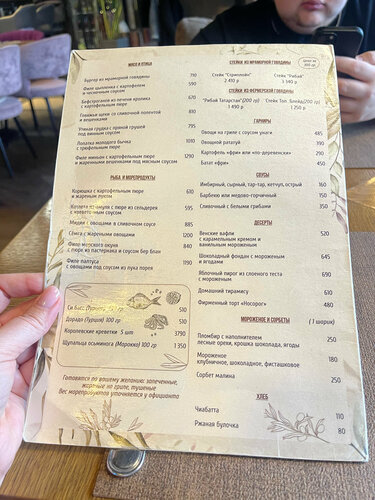 Одну звезду поставлю только за обслуживание официанта, вот что было хорошо. Сборный Борщ видела впервые - красный бульон с пеной, коричневые овощи от старого супа с привкусом, ну говядину свежую конечно положили. Полный диссонанс от блюда. Из чека конечно убрали , но отвратительное ощущение от отношения к гостям осталось еще и от фразы «у вас наличкой или переводом». Общий чек на троих вышел почти 6000. В зале холодно, сидели в пледах. Парковка платная, в выходные и после 19.00 безоплатная. В следующий раз пройду мимо этого заведения, чего и знакомым посоветую.