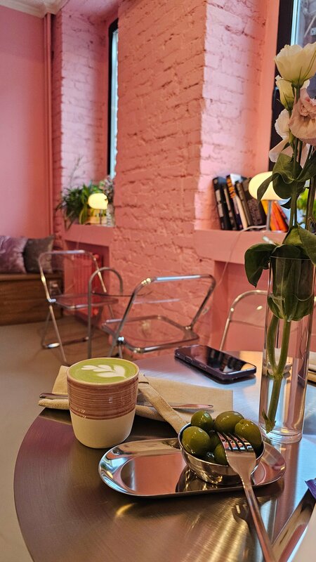 Интерьер прекрасен, хочется фотографировать и делиться со всеми знакомыми. В меню много интересных позиций от классики до новых вкусовых сочетаний. Еда вся понравилась, как и напитки. Чай чудесный. Но было неприятно, что блюда всем принесли с большим отрывом. Половина компании успела съесть по два блюда к тому времени, как принесли еду остальным