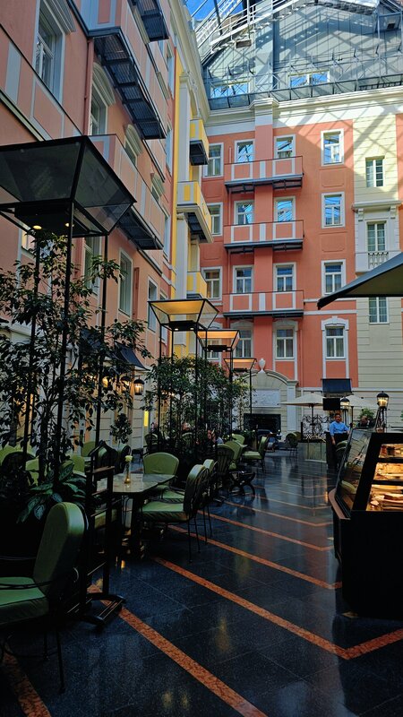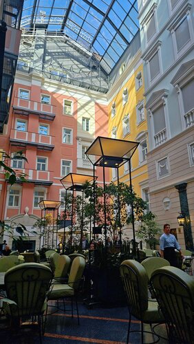 Красивое место, иллюзия дворика в отеле. Была дважды, но вкусной еды так и не удалось попробовать. Официантов приходится искать самому. Еда уровня столовой по цене лучших ресторанов города. Удивительно было встретить такой сервис в чудесном отеле.