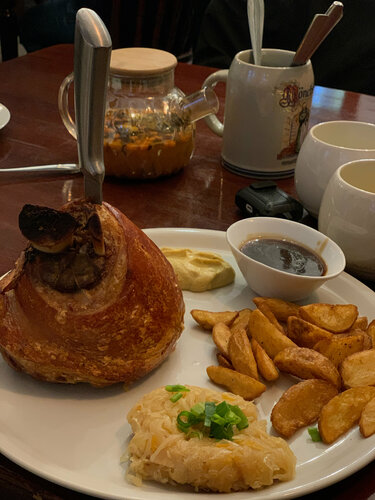 За еду твердая пятерка 🤩 Брали клопсы, очень рекомендуем, вкусные, нежные, много соуса, обязательно к пробе. Также решились взять рульку, это большое блюдо нам тоже понравилось, рулька зажаристая и сочная. Мы остались довольны 😁 Есть единственное пожелание по меню, оно уже сильно потрепалось, хотелось бы видеть более презентабельное меню.