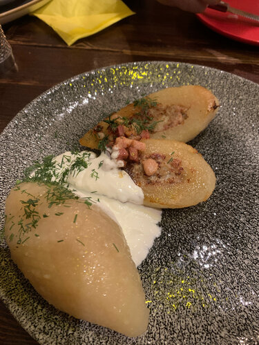 Строганина из пеламида хороша, очень понравилась 👍🏻 Рассказали, как правильно её надо есть, поэтому и просто рыбу попробовали, и еще потом правильно её «доготовили», и с удовольствием скушали. Цеппелины на любителя, особенно вареного вида, жареные нам понравились больше. Чай с рябиной приятный, осенний 🙌🏻