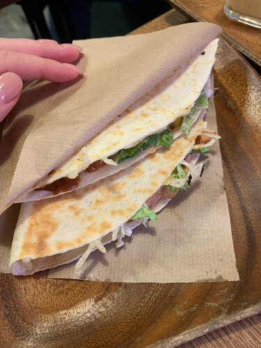 - Насос с сыром - обычная приятная закуска, соус нежный и нежирный; - Кесадилья с курицей не имеет какого-то яркого вкуса, сочная, но очень простенькая; - Буритос с Чили кон карне тоже просто нормальный, не впечатлил. И мы не совсем разобрались в градации остроты: острота на 1/5 почти не ощущается (хотя сказали, что по ощущениям должно быть как перец халапеньо); острота 3/5 ощущается как острота в дошираке с говядиной (хотя тоже сказали, что по ощущениям будет как соус табаско). Ожидание заказов долгое, персонал прекрасен. Понравился лимонад лимон-мята, подходит тем, кто не любит сладкие напитки.