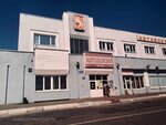 Я не посещала саму гостиницу. Но осматривала снаружи. Что тут можно сказать - сама здание ничем не примечательно. Перед входом оформление - противотанковые ежи + муляж авиабомбы, врезавшийся в валуны, составляющие ограду небольшого бассейна или фонтана . Все очень скромнкнькое, но вполне соответствует названию.И тут же вылезает из люка улыбающийся сантехник дядя Коля, протягивающий постояльцам руку, чтобы поздороваться ( жанровая скульптура). Ну что ту скажешь? По отдельности - ежи+ бомба и сантехник выглядят нормально. А вот вместе? Какой то винегрет получается. Я люблю жанровые скульптуры. И против Сантехника ничего не имею. Просто вместе с тематикой обороны Сталинграда не сочетается его улыбающаяся физиономия. Кто хочет сфоткать Сантехника - это только раннее утро, потом все в тени будет. Хотя, может, и это кого то устроит.