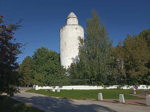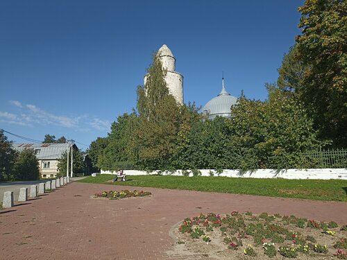 Изумительное строение, дошедшее к нам из средневековья, из Касимовского ханства,столицей которого некогда был Касимов. Завоевания не было. В те далёкие времена князю Василию Тёмному очень помогли татарские князья. В благодарность за это он подарил татарскому князю Касиму город Городец Мещёрский, который с тех пор и стал именоваться Касимовым (городом). Жили дружно - русские и татары. Татары и построили эту мечеть. Я множество минаретов видела, но такой формы- нигде и никогда, что только увеличивает его ценность. Тем, кто имеет целью взобраться на минарет, следует иметь в виду,что в Яндексе недостоверная информация. В настоящее время мечеть передана татарской общине, и когда возможен подъем на минарет, следует узнавать по телефону. Который можно узнать в туристическом информационном центре на Соборной площади - они там памятки с новой информацией выдают. Ещё хочется с сожалением отметить, что этот великолепный минарет скоро невозможно будет увидеть из за разросшихся деревьев. И открыточный вид , символ Касимова, скроет листва. Увы, у нас уже традиция - либо забор поставить непроницаемый для глаз, либо деревья посадить , чтобы уж ничего видно не было. Зачем? Ведь есть же прекрасные невысокие деревья типа рябины. Тут и красота листьев и ягод, и обрамление мечети и минарета, и открыт великолепнейший вид на это чудесное свидетельство прошлых времен
