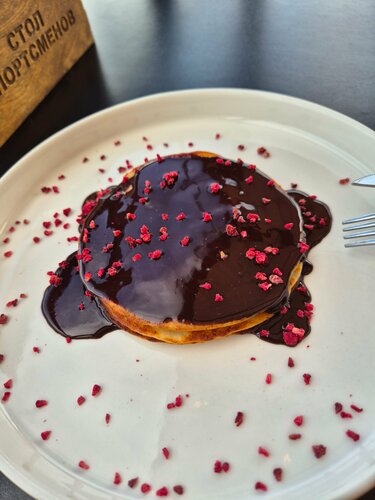 Ну вечером тут наверняка веселее... В 10 утра только меню завтраков, 2 вида десерта, один из которых отсутствовал. Обслуживание среднее: месяц октябрь - кофе постыл пока принесли закуски. Хотя просила все подать одновременно. Бутерброд вкусный, Бруни не было, а панкейки как-то не были похожи на свежеприготовленные. Уверена, что заведение неплохое, просто надо приходить после 11 на основное меню.